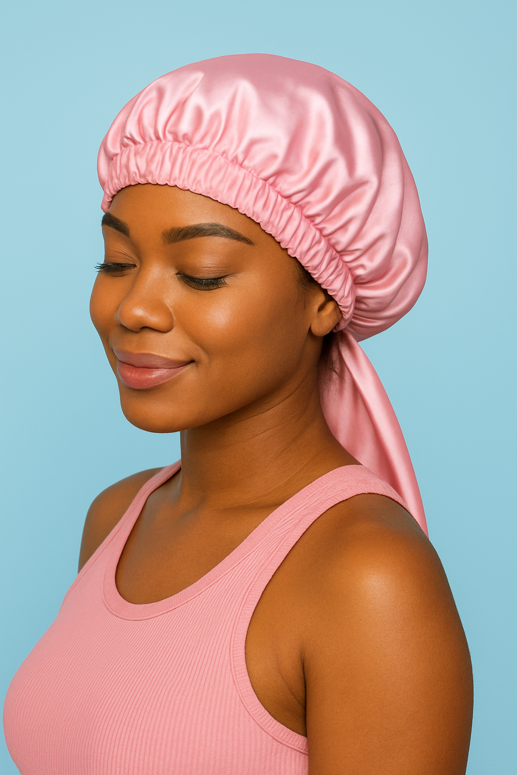 Stay sleek and confident with our silky Women Bonnet. Designed to protect your hair, lock in moisture, and keep your style flawless day or night. Soft, breathable, and stylish for every look.
